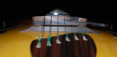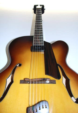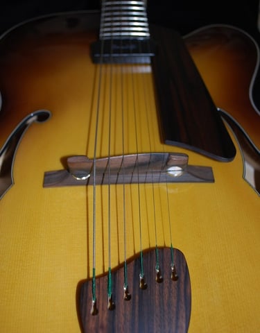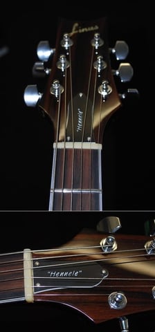 Einlagen: Perlmut im Griffbrett und auf der Kopfplatte.