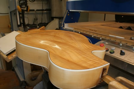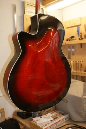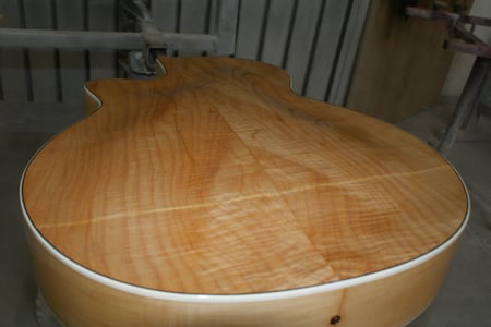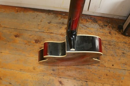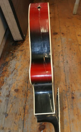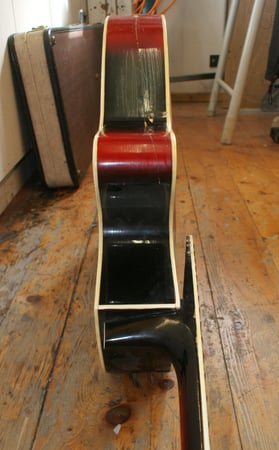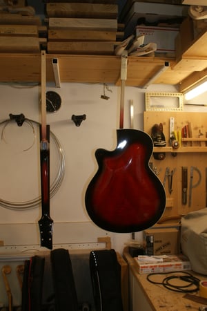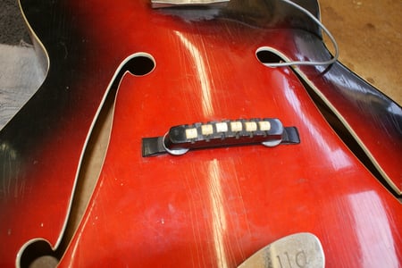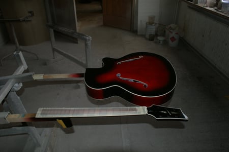 zeigen einen Ausschnitt der Restaurationsarbeiten an einer Framus Sorella aus den 50er Jahren.
